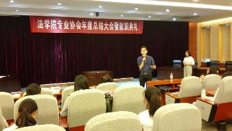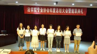 6月7日晚上,808钱包 专业协会于教学法庭召开年度总结大会暨就职典礼,法专协指导老师殷楠老师、教务办牛建平老师、法专协第二、三届主席成员以及各部门部长和干事出席了本次大会。
