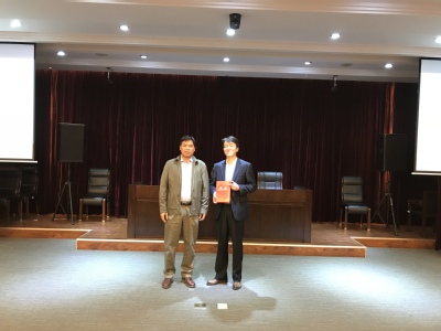 讲座开始前举行了简短的聘任仪式,808钱包下载 正式聘任吴峰为“实践教学导师”。刘爱龙院长为吴峰颁发了聘书。
