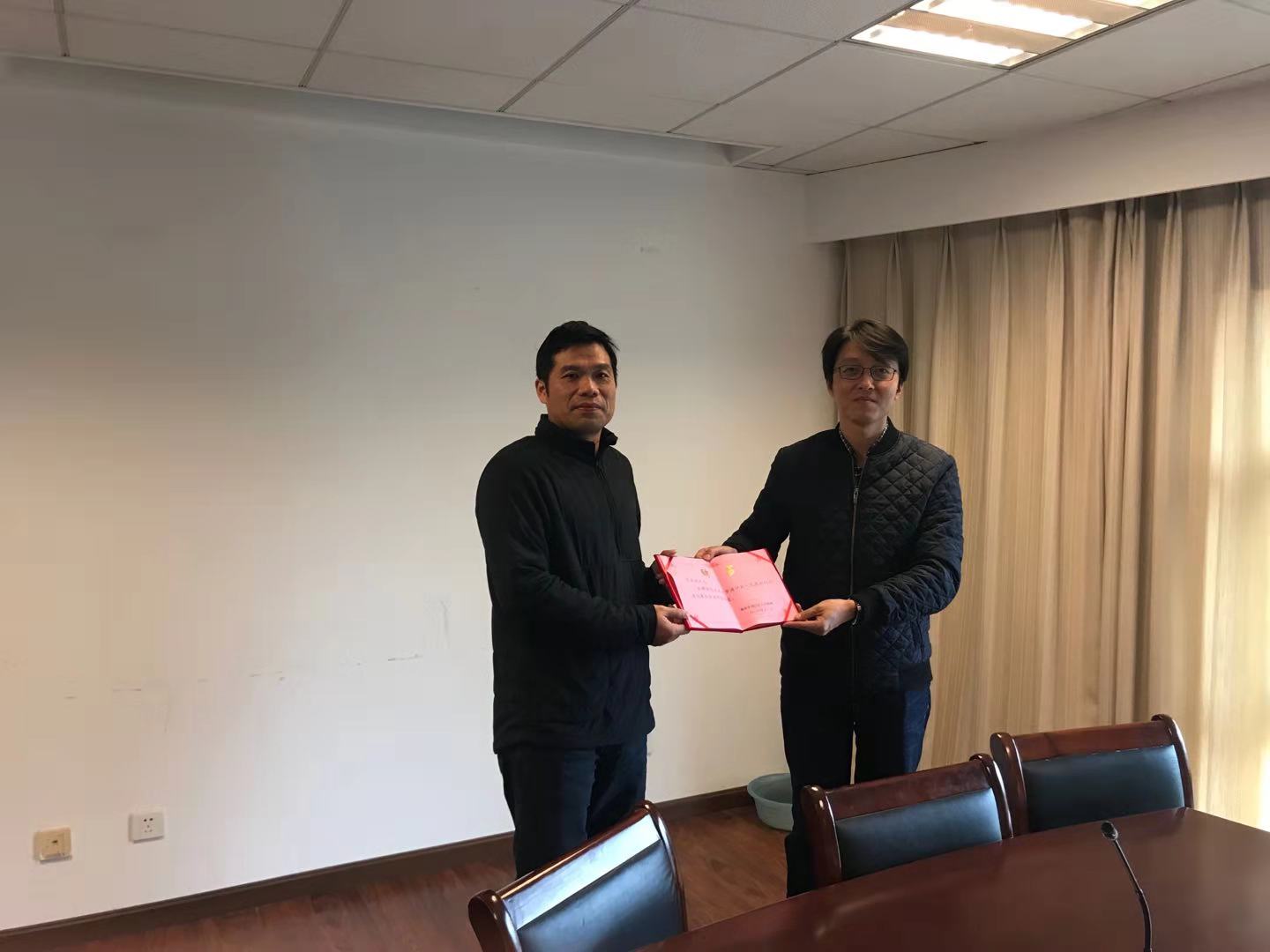 11月21日下午,为了深化依法治国的实践,贯彻落实中共中央、国务院关于《法治政府建设实施纲要(2015-2020年)》,南京市浦口区法制办吴峰主任,姚勇科长,倪泉科长一行三人到808钱包下载 交流学习依法行政相关内容,并向刘爱龙院长颁发了浦口区行政复议委员会委员的荣誉聘书。808钱包 院长刘爱龙、科研部部长汪自成、法学系主任孙展望以及年青教师参与了研讨。