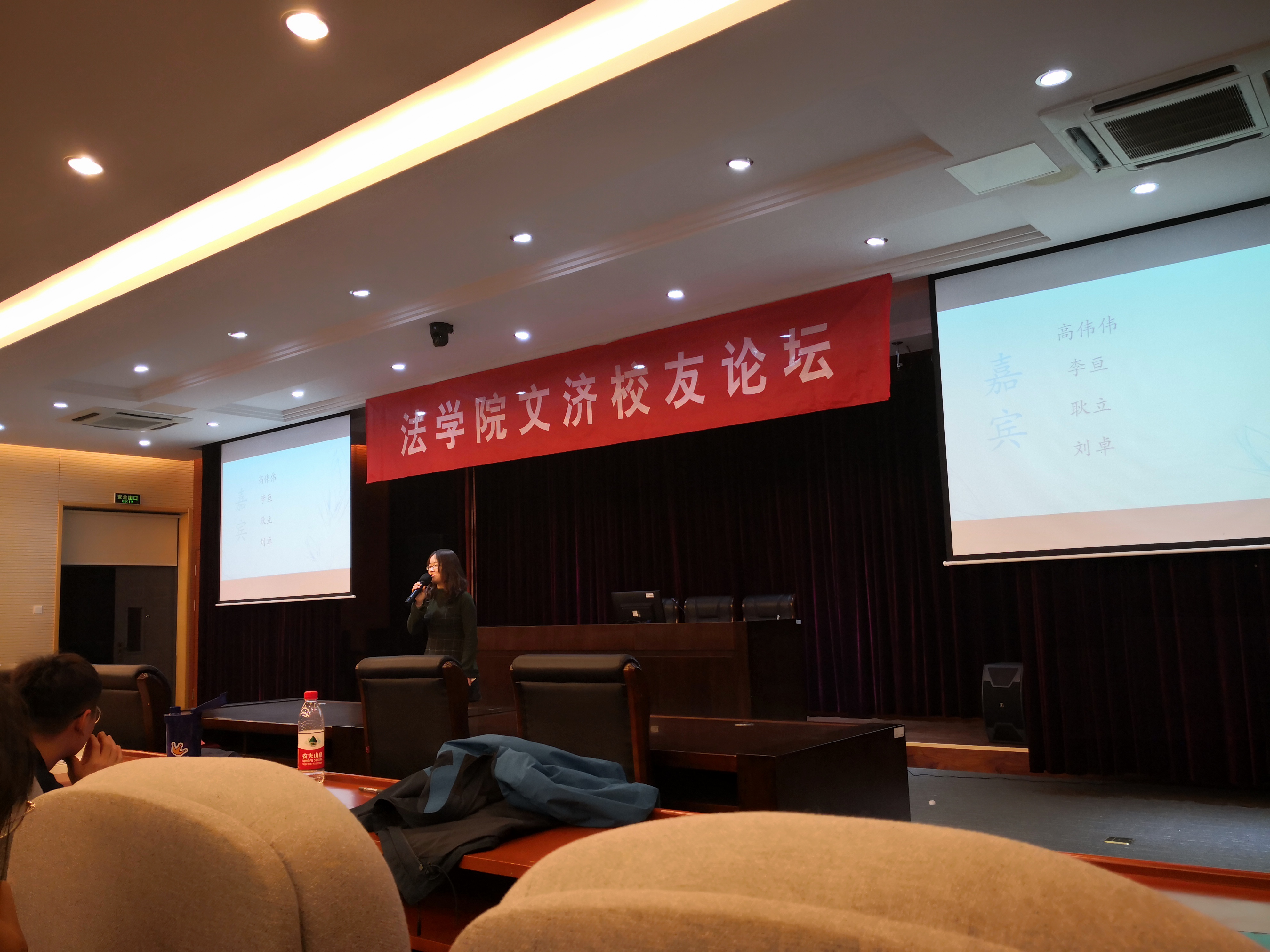 4月3日晚,808钱包 第七期“文济校友论坛”在文心楼教学法庭举办。808钱包 青年教师李亘和高伟伟两位博士,808钱包 2015级法务会计班级学生耿立和刘卓两位优秀应届毕业生应邀担任嘉宾出席了此次活动。