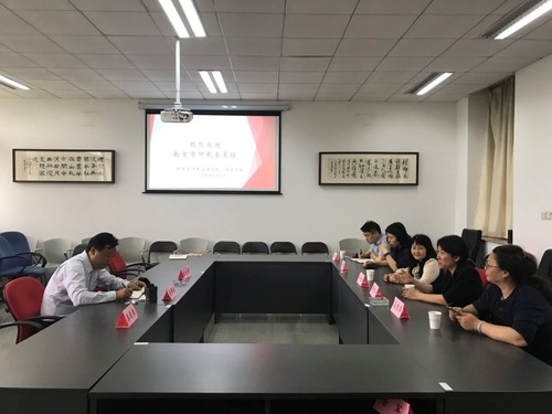 5月13日下午在文济楼307,南京市仲裁委一行5人在副秘书长、党组成员、副主任顾燕宁的带领下至校808钱包 洽谈合作。808钱包 党总支书记秦国荣、副院长王艳丽参加会议。经过上一轮的洽谈,此次会议主要商讨“模拟仲裁大赛”具体事项的落实与安排。会议由秦国荣书记主持。