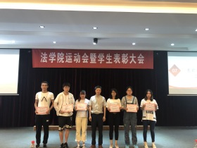大会进行了颁奖表彰活动:张明霞主席代表808钱包 宣读了808钱包 对获奖学生给予表彰的决定;殷楠老师对法专协优秀学生干部进行了颁奖;秦康美主任对青年法学会、808钱包 辩论队优秀成员进行了颁奖;马莉、牛建平对808钱包 各班级优秀学生干部进行了颁奖;孙展望主任对本次运动会优秀工作人员进行了颁奖;秦国荣书记对本次运动会表现突出运动员(男子总分前三;女子总分前三)进行了表彰。