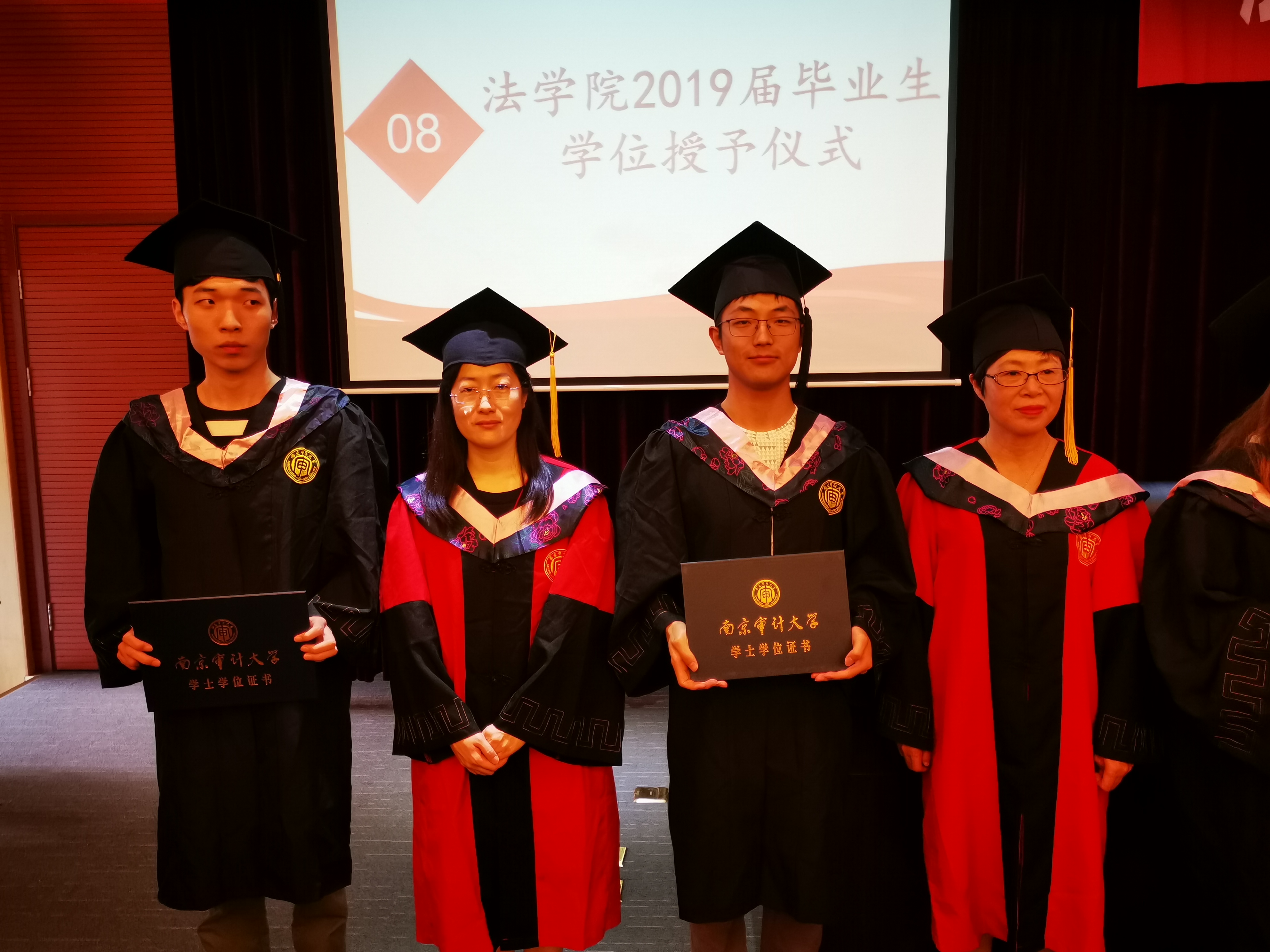 时光流逝如花,岁月辗转成歌,6月22日,808钱包下载 在文心楼二楼教学法庭隆重举行了2019届毕业生学位授予仪式。南京审计大学党委副书记、校长刘旺洪,润园书院党委书记张勇,808钱包 院长刘爱龙,808钱包 党总支书记秦国荣,808钱包 教师赵洲、卢小毛、张明霞、孙展望、朱娟、苏欣、路广、殷楠等以及808钱包 2019届全体毕业生出席了本次学位授予仪式,仪式分两场进行,由808钱包 副院长王艳丽主持。