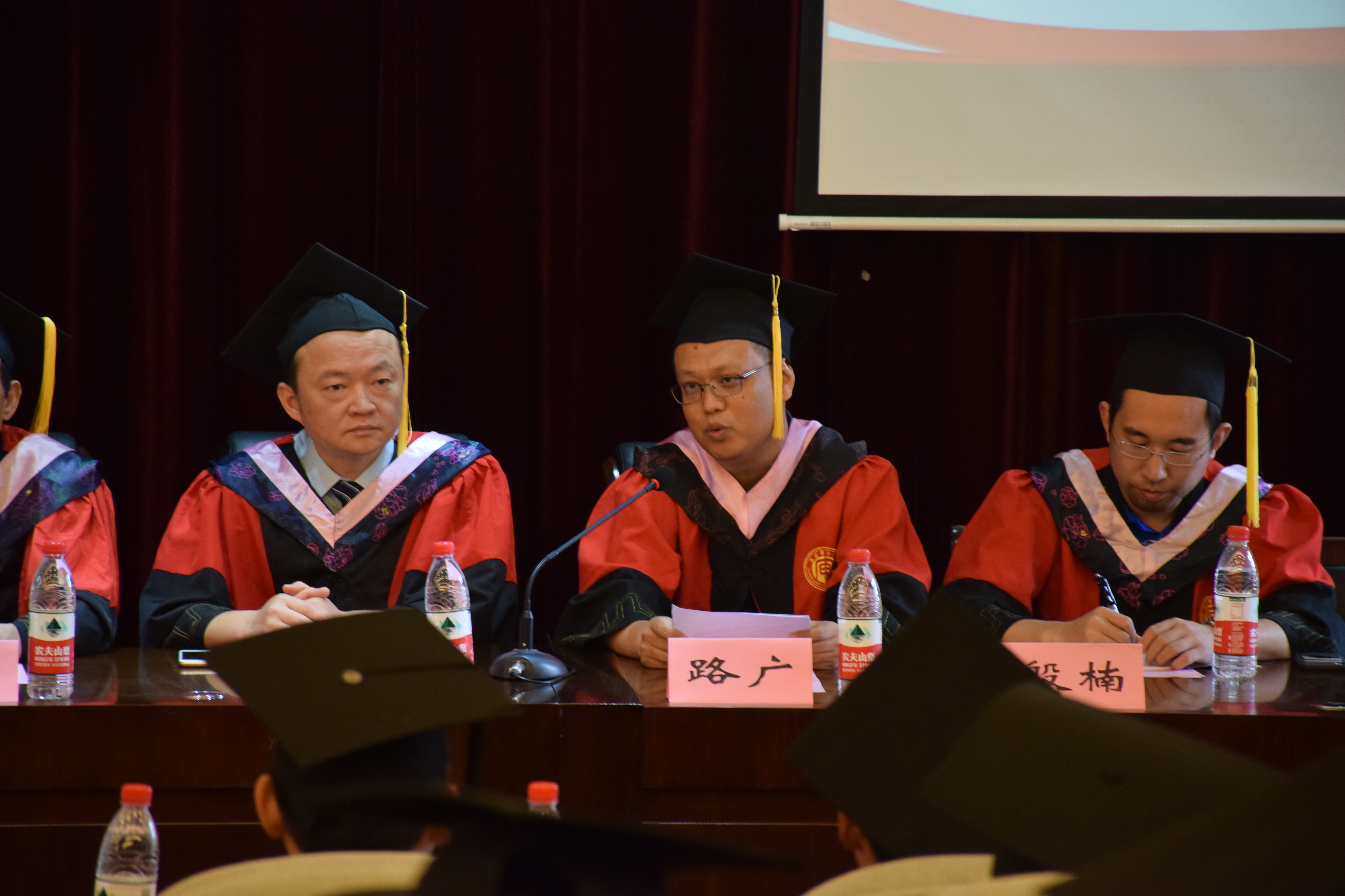 刘爱龙和秦国荣分别于前后两场授予仪式上宣读了关于授予2019届毕业生学士学位的决定。808钱包 党总支成员、工会主席张明霞宣读了关于授予2019届毕业生荣誉学士学位授予的决定;808钱包 校友工作负责人苏欣宣读了关于聘请庄严等同学担任2019届校友联系人的聘请决定。