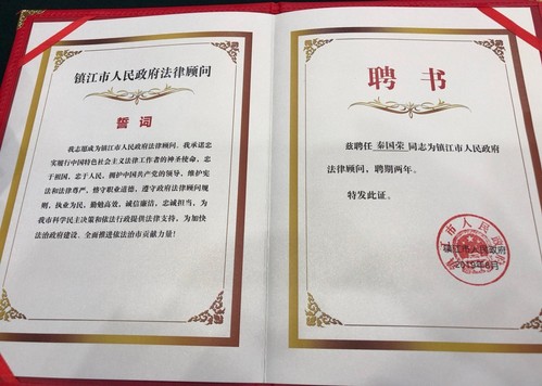808钱包下载 秦国荣教授受聘为镇江市政府法律顾问