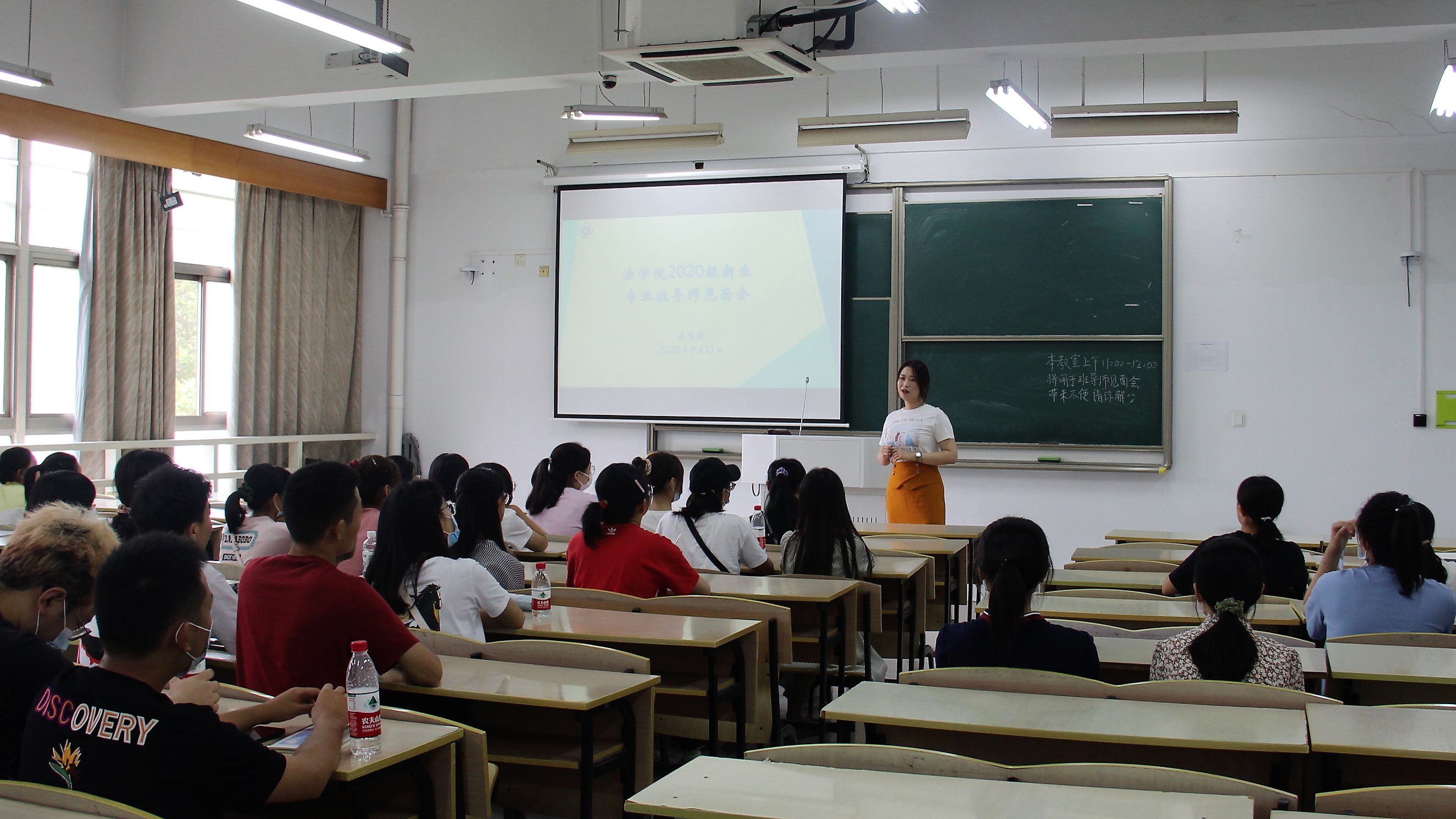 9月13日上午,各班专业导师在致远楼各教室分别为所带班级召开班会。各位导师详细了解了同学们高考以后的状况、对专业的困惑、对学业的规划、对大学生活的期待,与大家沟通了应该以怎样的心态和准备来开启大学学习生活。各位导师结合自身学习经历和法学专业特点,现身说法,引导同学们认识到怎样才能学好专业、怎样才能不忘初心,怎样才能不负韶华,并表示将全力为同学们保驾护航,帮助他们成长为优秀法律人。部分导师还请来优秀校友为班级同学做深入交流。