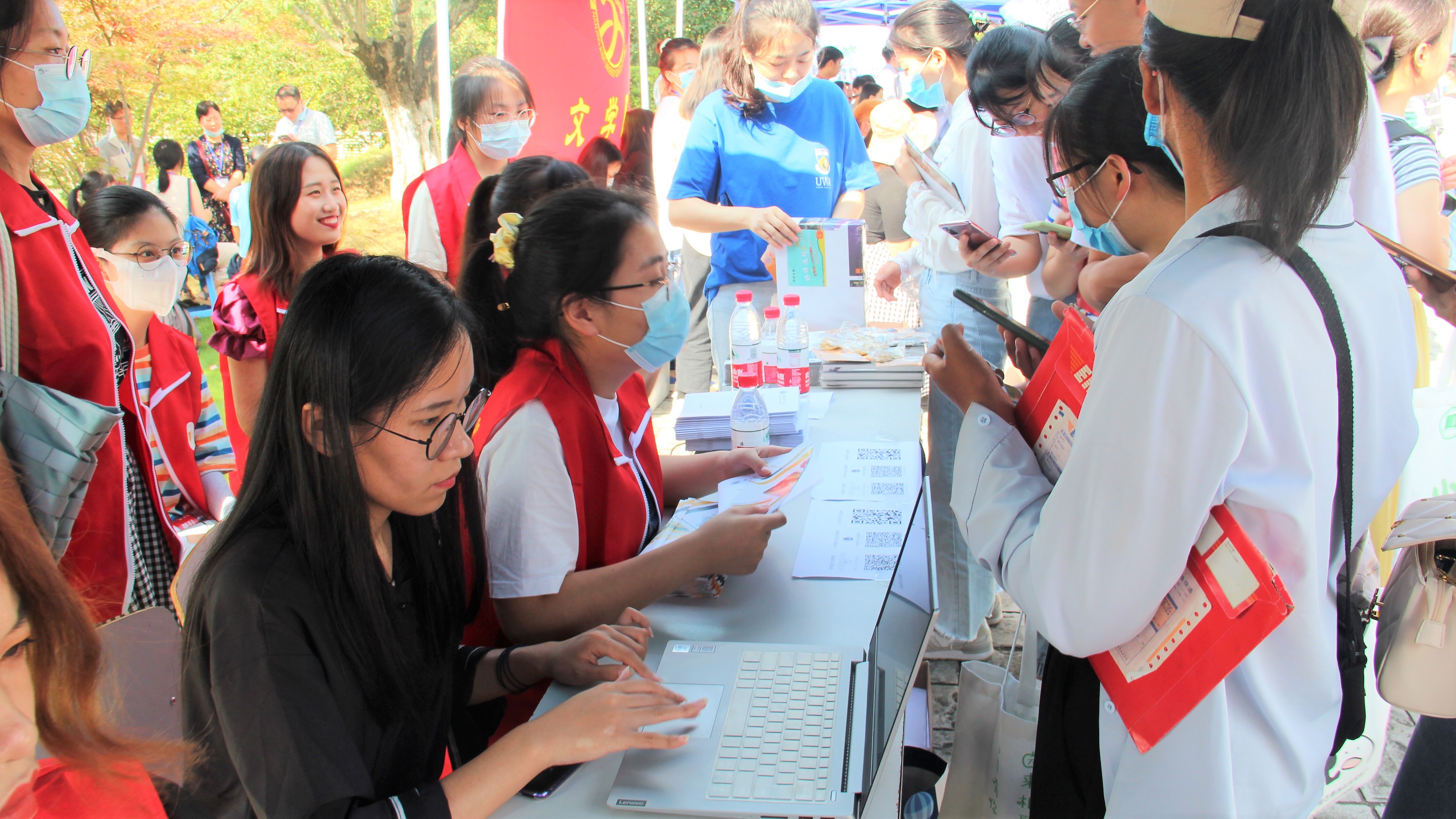 天高云淡,山明水秀,润泽湖畔迎新生。随着2020级新生正式报到,808钱包 的迎新工作也有序拉开帷幕。9月12日,808钱包 领导班子全体成员、系主任、教师代表,以及沁园书院领导、辅导员等老师亲临新生报到现场,欢迎四面八方而来的新同学,指导新生注册报到工作。迎新工作人员热情细致地为每位新生办理报到手续,老师们也在现场为新生提供咨询指导,积极互动。