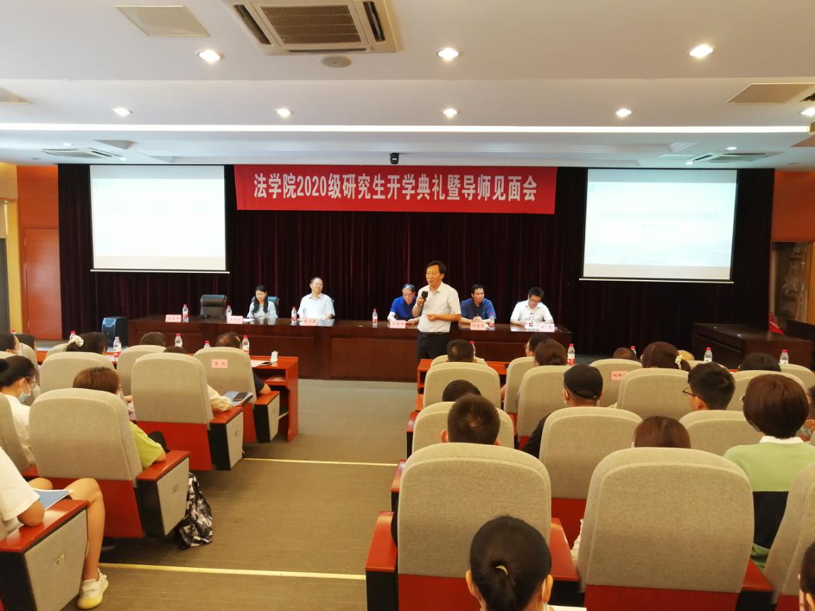 9月13日下午,808钱包 2020级硕士研究生开学典礼暨导师见面会在文心小剧场二楼教学法庭举行。南京审计大学校长刘旺洪、教务委员会主任程乃胜、808钱包 院长刘爱龙、法808钱包 党总支书记王艳丽、副院长徐彰以及全体导师、2020级全体研究生参加会议,会议由王艳丽书记主持。
