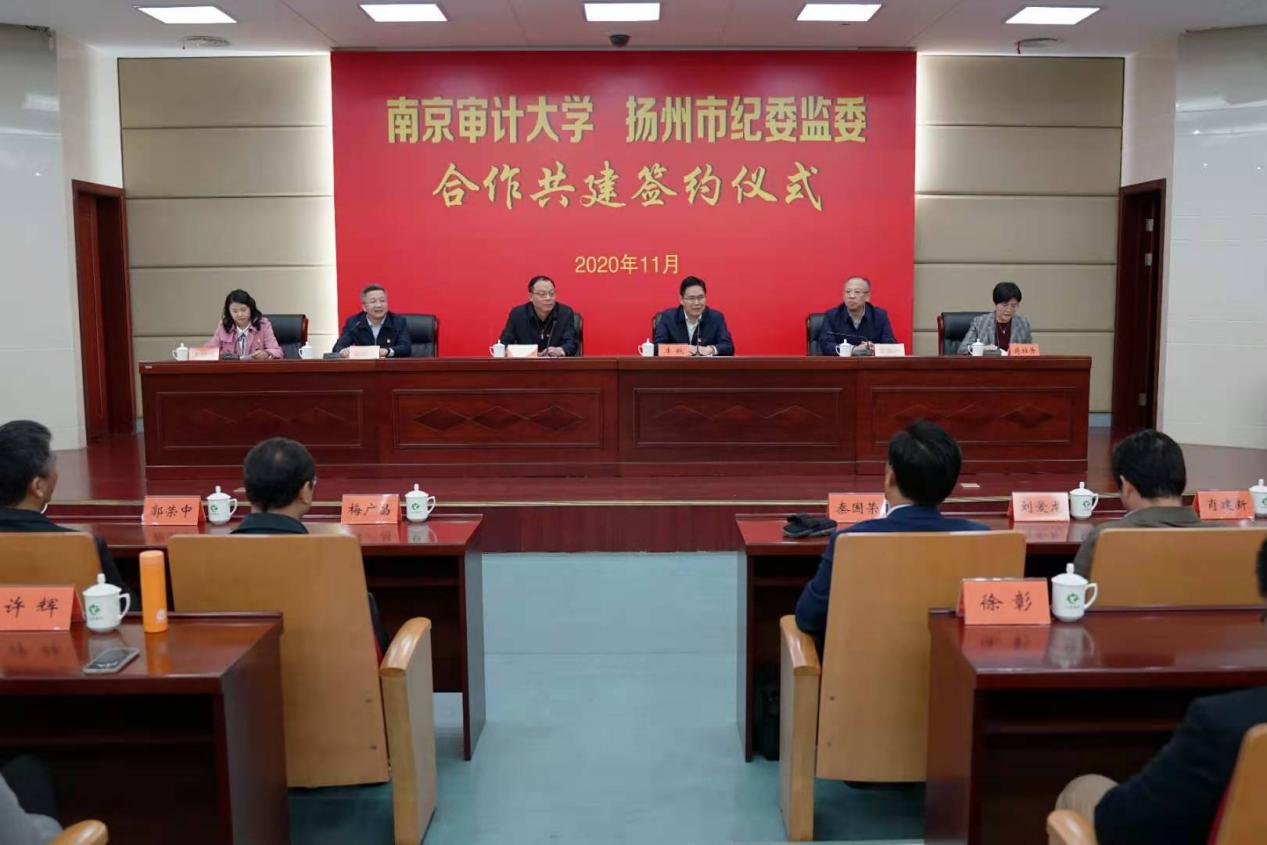 校地共建签约仪式由扬州市纪委副书记、监委副主任、机关党委书记郭鹏驰主持,首先由扬州市纪委书记、监委主任李航致辞,扬州市纪委常委蒋桂芳宣读合作共建协议。校党委副书记、校长刘旺洪代表学校发表讲话,感谢扬州市纪委对本次活动的精心安排,同时介绍了南审的历史和808钱包 的发展历程,表示将以党建引领发展,搭建互动平台,在高校人才培养、校地合作共建等方面开展全方位合作交流,助力协同发展。