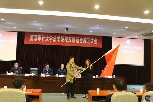 会议议程伊始,南审学校及808钱包 的宣传片以生动的画面向与会校友报告了学校、808钱包 近年来的发展进步。刘旺洪校长首先致辞,对返校的各位校友表示了热情的欢迎,对808钱包 校友联谊会的成立给予了美好的祝愿,对南审808钱包 联合校友力量更好地建设发展提出了美好的展望。第二项议程,会议宣读了808钱包 校友联谊会第一届顾问成员名单及理事会成员名单,808钱包 党总支书记王艳丽教授为苏欣老师等顾问成员颁发了聘书,808钱包 教师代表赵洲、殷楠、李相森为校友联谊会第一届理事会会长芈永梅(97级)、执行会长郑枭(06级)等理事会成员颁发了聘书,在校学生代表为校友联谊会校友代表佩戴了校徽。第三项议程,校友工作办公室副主任张林林为808钱包 校友联谊会授旗,808钱包 校友联谊会第一届理事会会长芈永梅律师代表校友联谊会接旗。