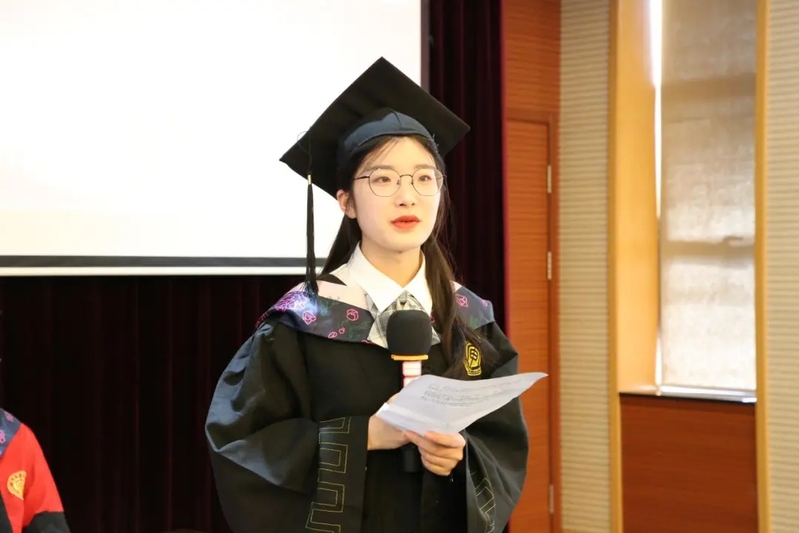 吕情和游俊哲同学分别代表毕业生发表了毕业感言。他们回忆了四年来在润泽湖畔,文济楼前的学习和生活,感谢老师们的教导与无私奉献,并表示不忘作为法律人的初心和使命,敢于担责,坚守底线,热爱法律,更好地为社会做出贡献。