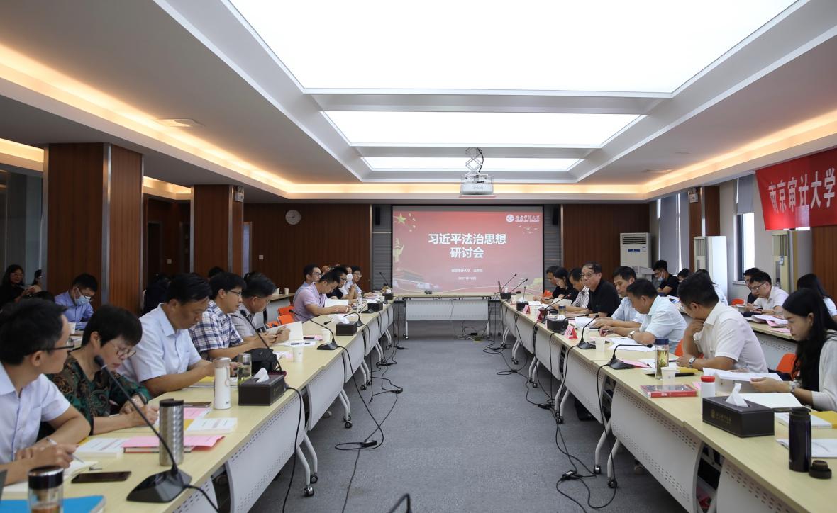 为深入学习习近平法治思想,2021年10月9日上午,南京审计大学808钱包 在中和楼502会议室召开了习近平法治思想研讨会,南京审计大学党委副书记、校长刘旺洪教授、教师发展与评价处处长刘爱龙教授、科研处处长汪自成教授、博物馆馆长谢冬慧教授、外国语808钱包 党总支书记江振春教授等法学学科教师近60人出席会议并参与研讨,本次会议由808钱包 党委书记刘宏宇主持。