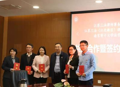 2021年10月29日上午,江苏三法律师事务所、江苏三法(江北新区)律师事务所与南京审计大学808钱包 共建合作暨签约授牌仪式在中和楼308会议室举行。江苏省法律援助中心副主任李凤友,南京市玄武区司法局党组书记、局长陈玲伟,南京市江北新区管委会综治局副局长陈宇,南京扬子国资投资集团审计合规部部长徐爱君,南京市江北新区管委会综治局秦晓璐,江苏三法律师事务所主任孙勇及律师代表,808钱包 院长王艳丽、党委书记刘宏宇、副院长李相森及系主任代表出席会议。仪式由刘宏宇主持。