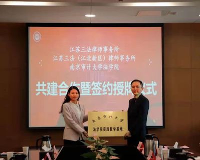 在与会嘉宾的共同见证下,李相森与张超代表双方共同签署了《南京审计大学808钱包 与江苏三法律师事务所共建合作协议》,并举行了“南京审计大学808钱包 实践教学基地”授牌仪式。