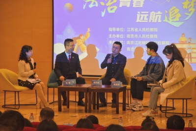 接下来活动分为四个部分,分别为检察官说法、反电信网络诈骗宣传、法治沙龙、公益诉讼职能宣传。来自南京市及各区的检察官和高校学子们分别用情景剧形式、沙龙聊天形式向学子们展示了电信诈骗及毒品犯罪的常见方式、危害后果,传达了“反电信诈骗、反毒品行动”的法治理念,宣传了检察机关以公益诉讼人身份在保护着社会公众利益的新型职能。