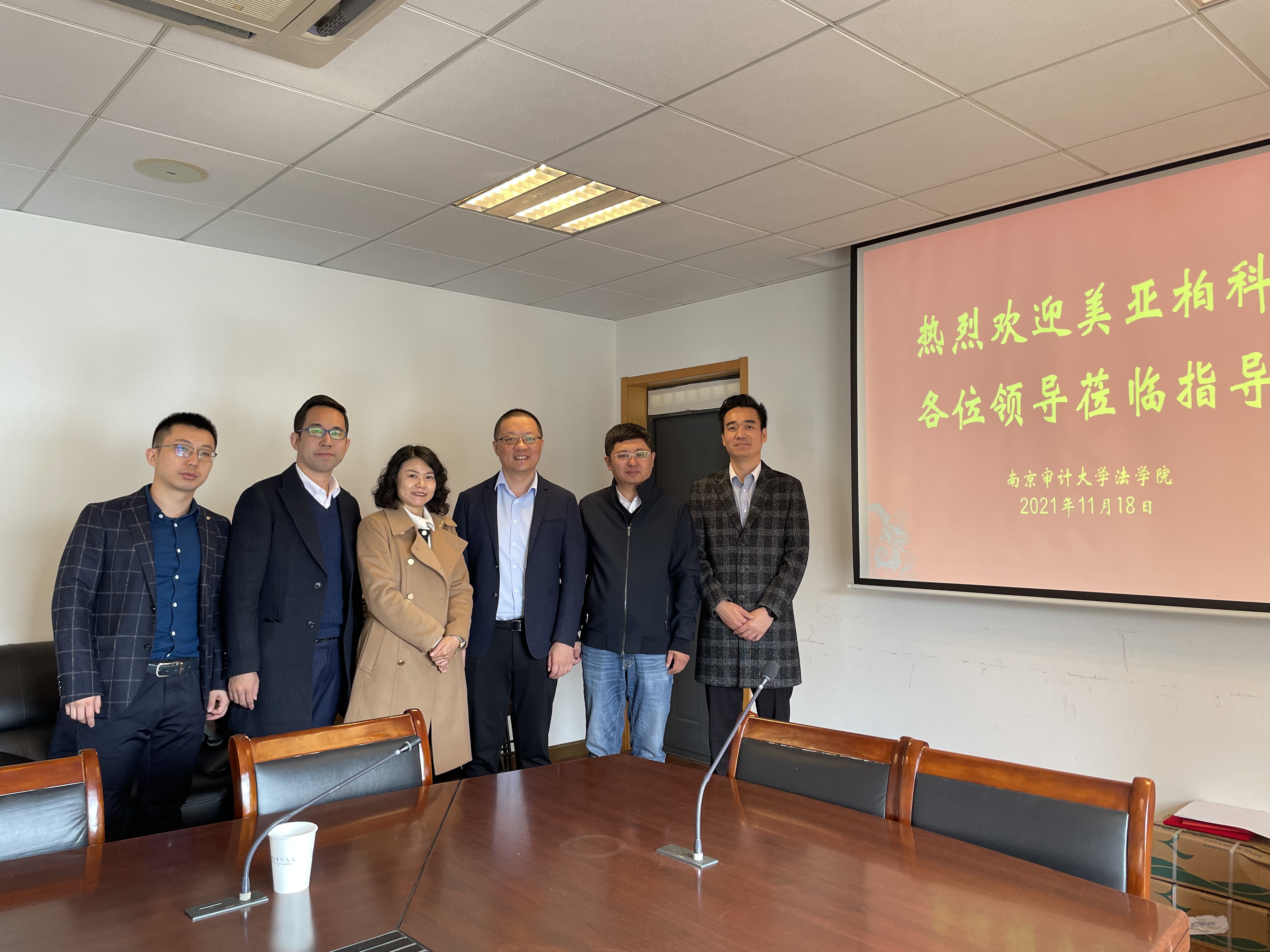 2021年11月18日,美亚柏科技术管理委员会委员、美亚亿安总经理吴少华,行业解决方案中心副总经理陈艺强,美亚柏科南京办事处陈林雨应邀到访808钱包下载 ,洽谈合作共建。808钱包 王艳丽院长、刘宏宇书记、殷楠副院长、陈苏豪博士参加了座谈交流。