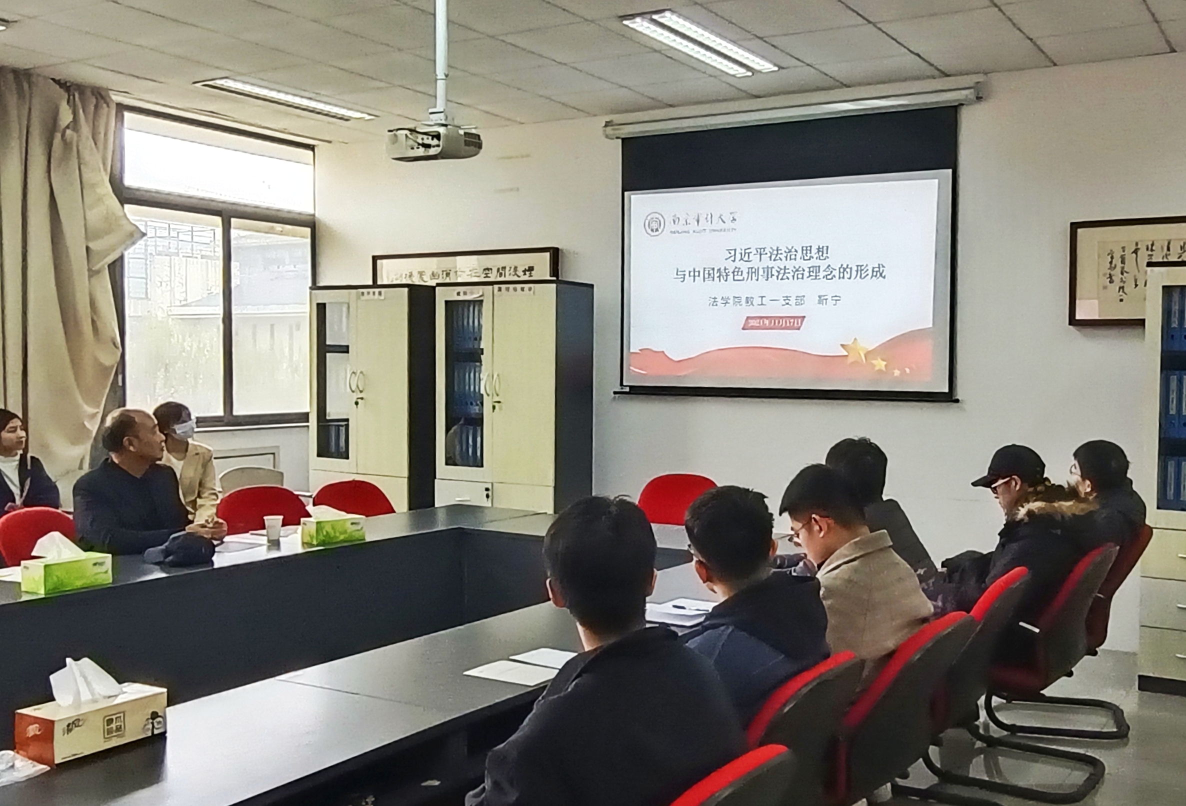 教工第一党支部靳宁书记主题微党课“习近平法治思想与中国特色刑事法治理念的形成”、教工第二党支部陈苏豪书记《以人民为中心的司法理念》的微党课在文济楼307开展,部分研究生党员同学参加,特邀组织张芊、王品正老师列席指导,808钱包