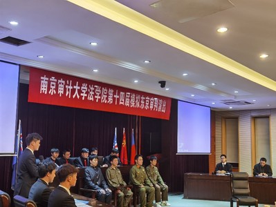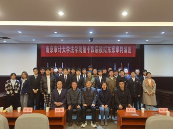 12月9日,为纪念即将到来的第八个南京大屠杀死难者国家公祭日,由我校808钱包 主办、青年法学会承办的第十四届模拟东京审判公演活动在浦口校区模拟法庭举行。我校党委学生工作部副部长任振、校团委副书记徐菲、808钱包 副院长李相森、808钱包 实践中心副主任刘文凯、808钱包 教工第一党支部书记靳宁以及100多名学生观看了此次公演。