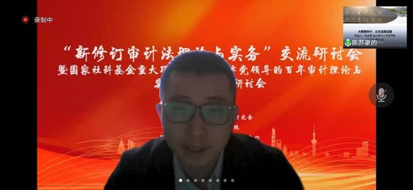 为进一步加强审计法理论研究,推动新修订审计法顺利实施, 4月16日,江苏省法学会审计法学研究会,南京审计大学808钱包 、国家审计研究院审计法治研究中心、政府审计与区域治理法治化研究院联合召开“新修订审计法理论与实务”交流研讨会暨国家社科基金重大项目“中国共产党领导的百年审计理论与实践研究”专题研讨会。根据疫情防控要求,本次研讨会采取线上形式召开。来自理论界和实务界的专家以及808钱包 研究生共70余人参加。