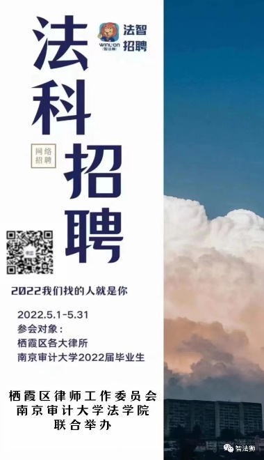本次网络招聘会为期一个月,贯穿整个五月毕业季,从2022年5月1日至5月31日。栖霞区全部32家律师事务所组成招聘团,计划定向南京审计大学2022届法科毕业生提供100多个招聘岗位及若干实习岗位。同时邀请省内其他律所积极参与本届网络招聘会。