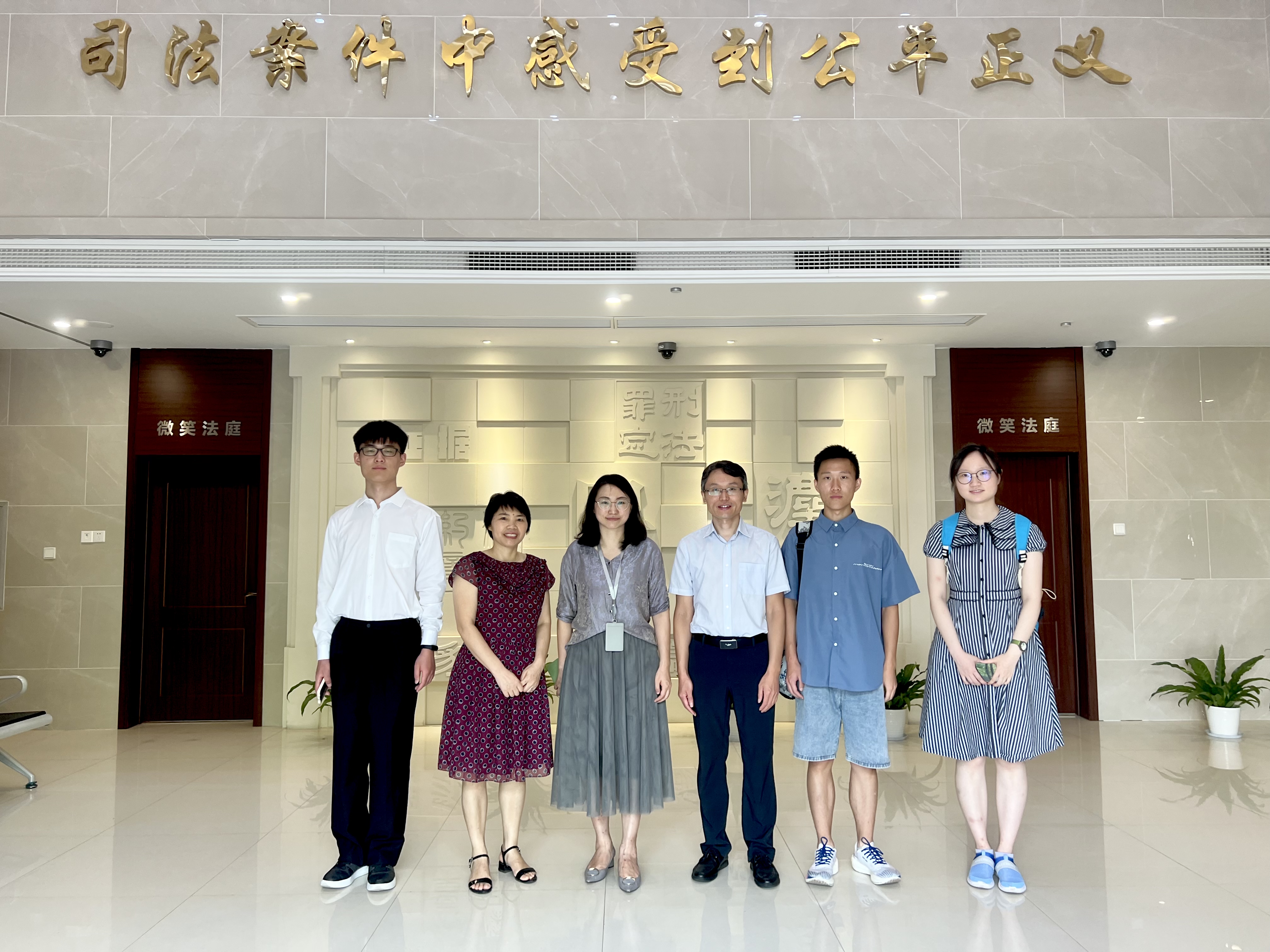 2022年7月7日,808钱包下载 谢月瑶、童忠强、沈纪龙三名学生在李相森副院长、实践教学中心秦康美主任的带领下,前往南京市江北新区人民法院开展为期两个月的实习。