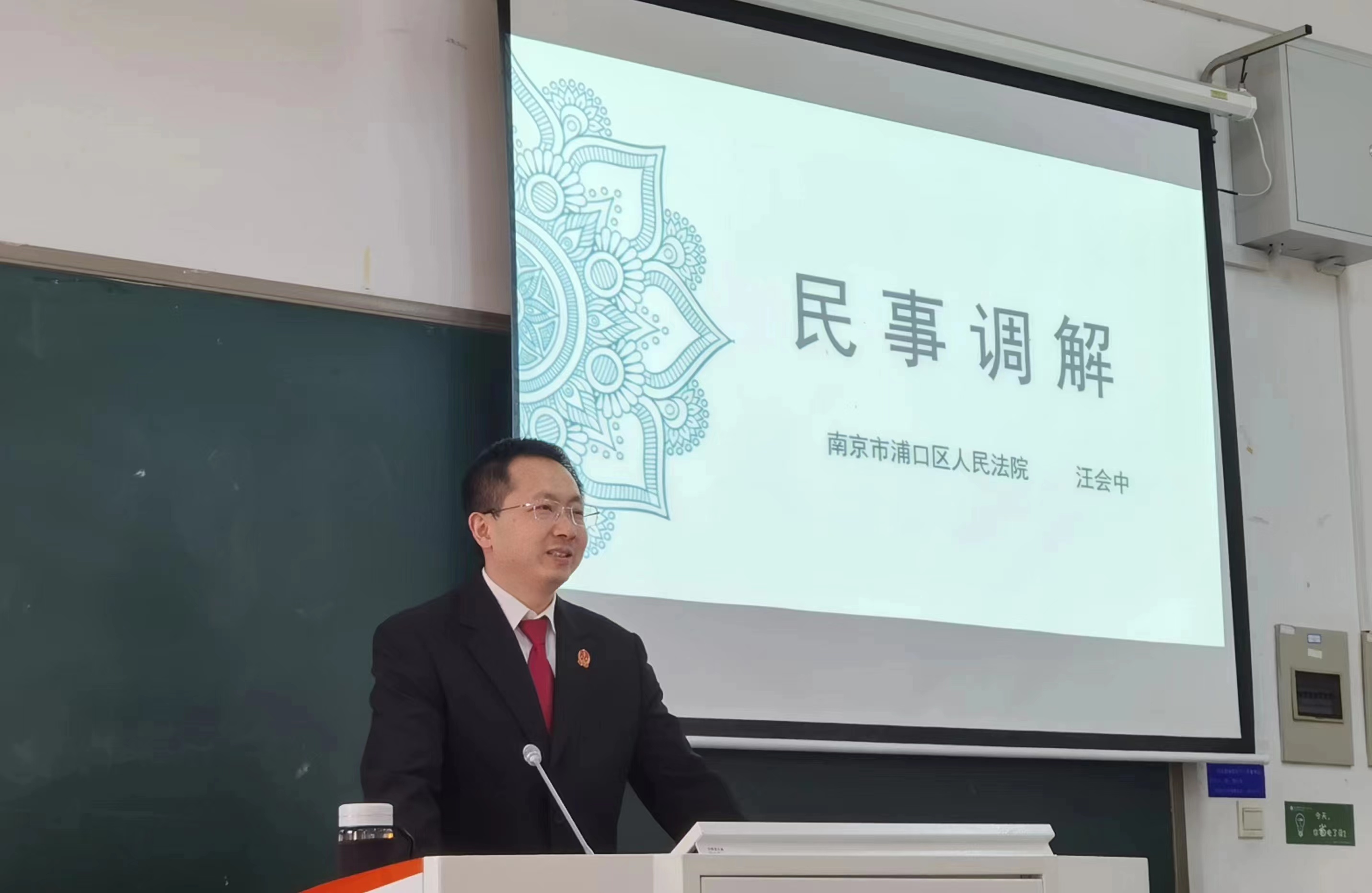 10月25日下午,南京市浦口区人民法院汪会中法官走进808钱包下载 《法律诊所》课堂,为20级法律诊所的同学们讲授《民事调解》专题内容。