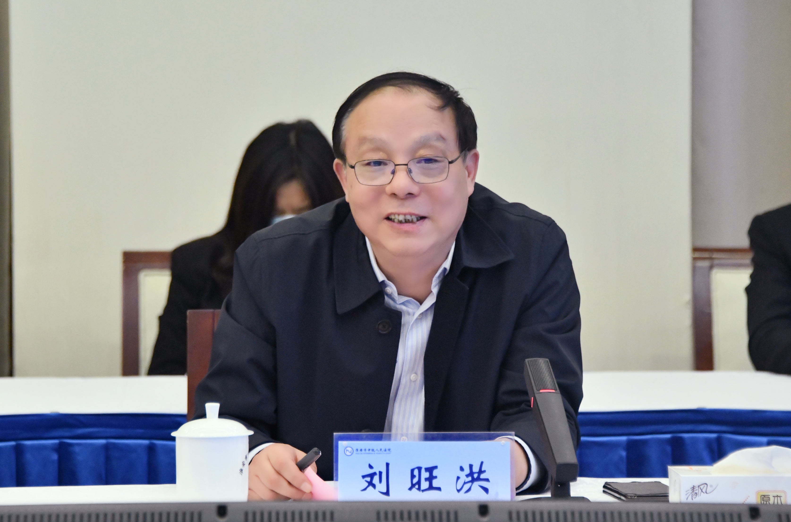 会前,刘旺洪一行参观了淮安市法院诉讼服务中心、“淮法云达”集约送达中心以及院史陈列馆等场所。