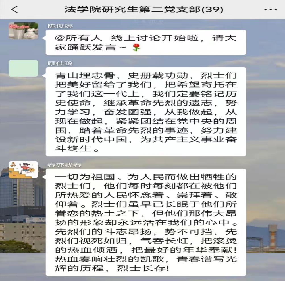 808钱包 研究生第二党支部开展“缅怀革命先烈,汲取奋进力量”线上云祭扫活动