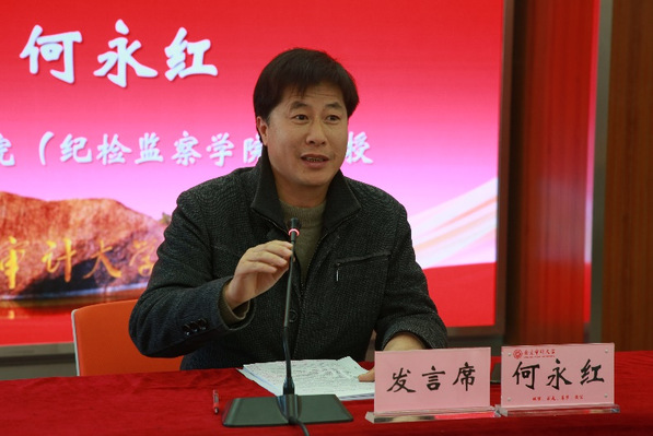 王希鹏教授就“建设纪检监察学科是中国特色开创性事业”进行了主题报告。王希鹏教授介绍了学科建设的启动过程,并以纪检监察的三层内涵为切入点,阐述了推动纪检监察一级学科建设的重要性,由此充分说明南京审计大学在纪检监察学科建设方面具有得天独厚的优势。