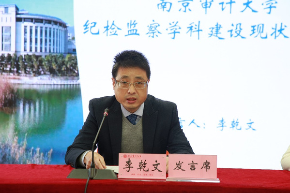 李乾文教授就“南京审计大学纪检监察学科建设现状与展望”进行主题报告。李乾文教授从学科专业探索历程、学科专业建设主要举措与成效、学科建设前景展望三个方面介绍了南京审计大学纪检监察学科建设情况。南审的纪检监察学科专业建设起步较早,在省纪委监委的支持下,发挥法学、审计学等学科优势,组建了优质的师资团队,探索了较为完善的本硕人才培养体系,开展了与纪检监察机关的深入合作。2022年,学校将纪检监察学确定为“十四五”校级重点建设学科,高标准推进纪检监察学科建设,这些举措将极大增强纪检监察学科的发展。