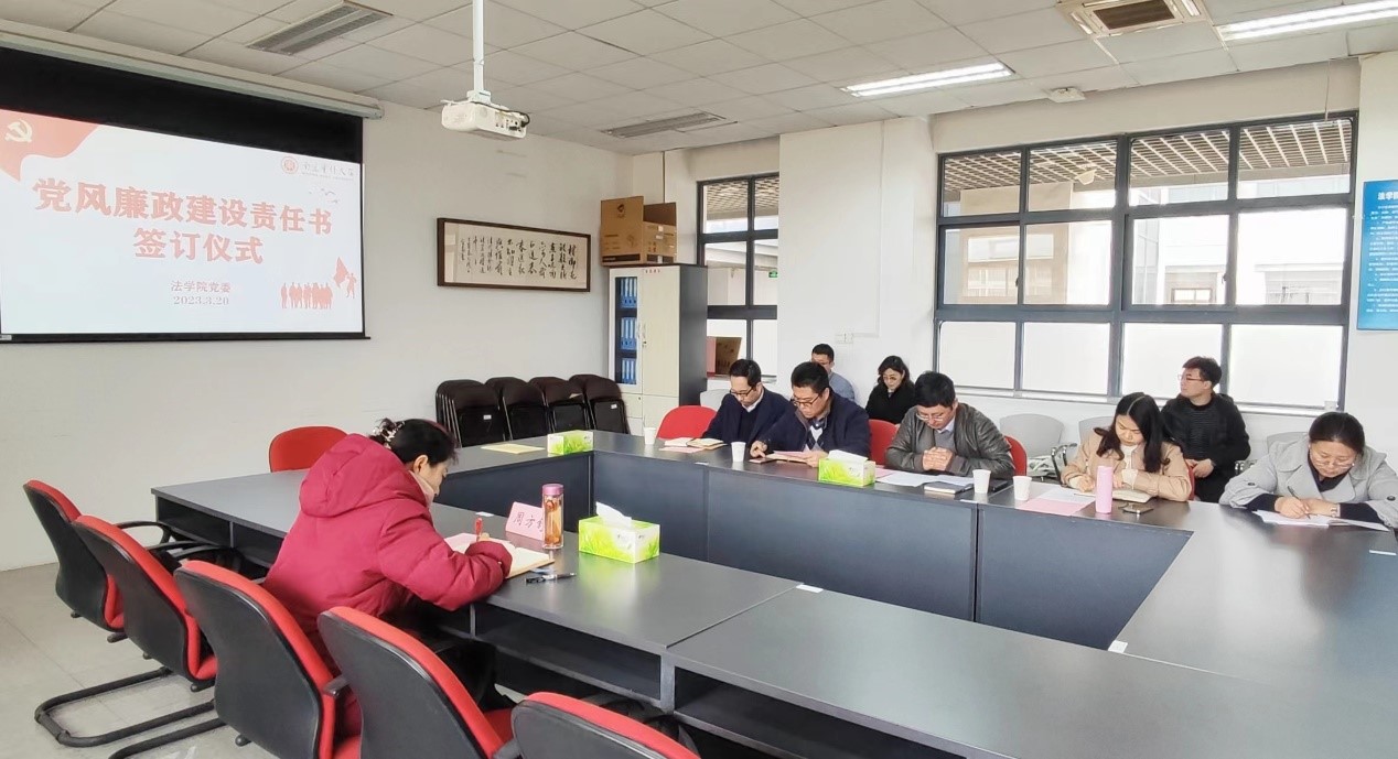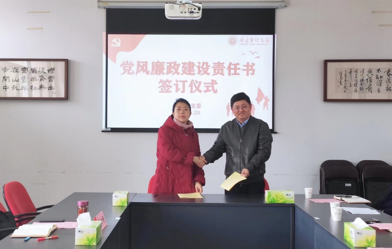 为深入贯彻党的二十大精神,落实学校2023年全面从严治党工作会议精神,推动808钱包 党政领导干部切实履行党风廉政建设责任,808钱包 党委于3月20上午在文济楼307举行党风廉政建设责任书签订仪式。南京审计大学校党委常委、副校长周方舒出席,808钱包 领导班子全体成员及各支部书记参加,仪式由808钱包 党委书记刘宏宇主持。