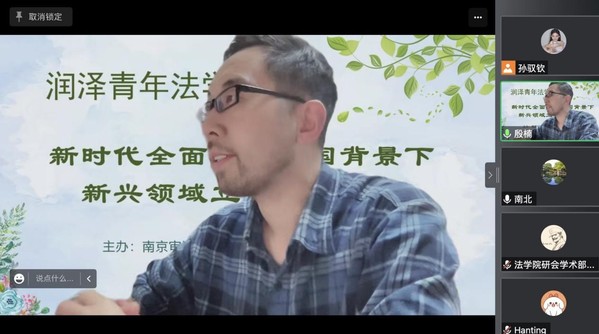 为深入学习贯彻落实两会精神,全面践行习近平法治思想,着力推进社会主义现代化法治建设,4月2日晚,808钱包 召开润泽青年法学沙龙,特别邀请808钱包 各学科方向的倪蕴帷、谌杨、靳宁、沈玲、陈苏豪、郝炜等十余位青年教师,就“新时代全面依法治国背景下新兴领域立法问题研究”进行研讨,会议由808钱包 副院长殷楠主持。