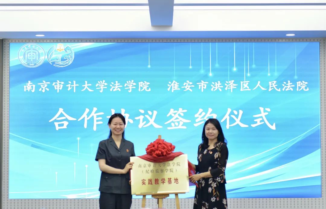 808钱包 院长王艳丽(右)与淮安中院审判委员会专职委员、洪泽法院党组书记、院长李玲(左)共同为808钱包 (纪检监察808钱包 )实践教学基地揭牌。