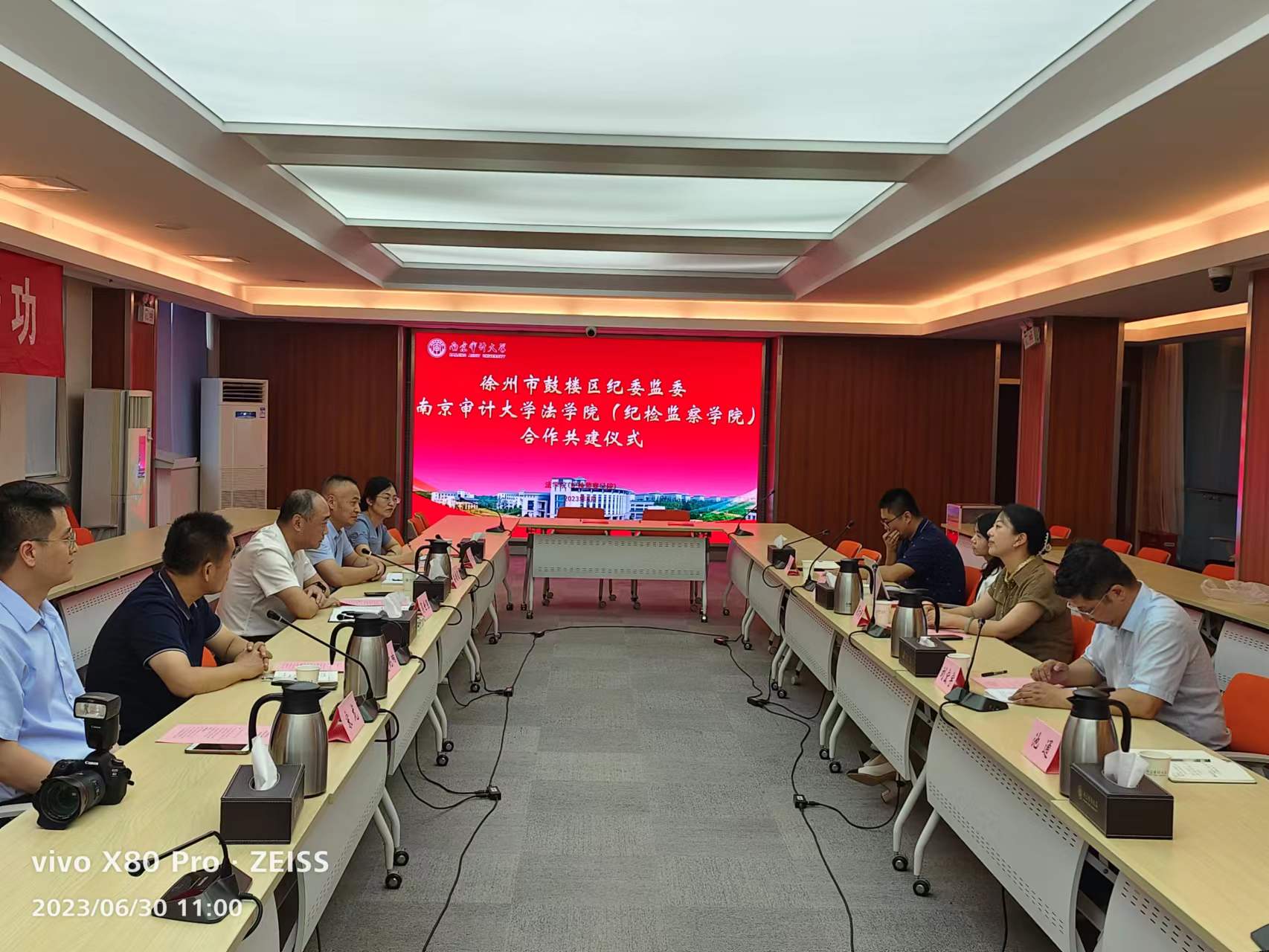 吴世强书记对双方共建合作、结对聚力的前景充满期待,他表示,南京审计大学纪检监察学科建设起步早、起点高,在理论研究、人才培养、纪检监察干部培训等方面均取得了显著成果。近年来,徐州市鼓楼区纪委监委深入把握党的自我革命要求、发扬自我革命精神,聚焦中心大局、突出政治责任、强化担当作为,坚定不移推动全面从严治党向纵深发展,着力打造监督执纪鼓楼样板。新时代全面从严治党背景下,纪检监察干部亟需提升学习创新能力,希望通过此次共建,有效整合双方资源优势,搭建多维度合作平台。