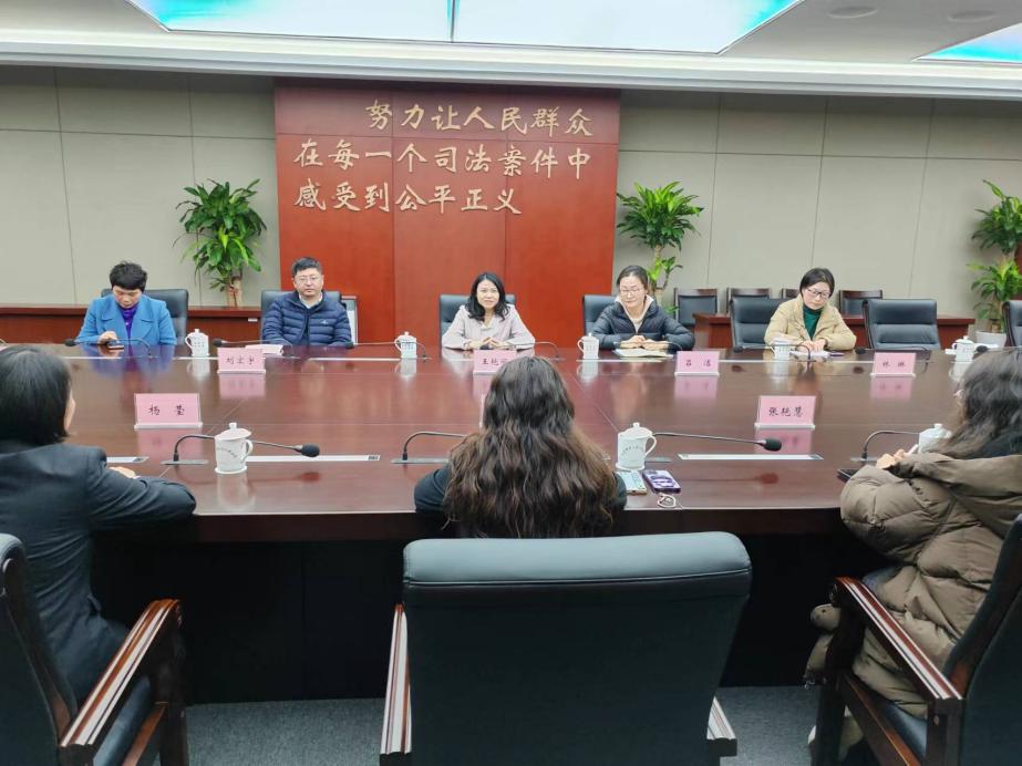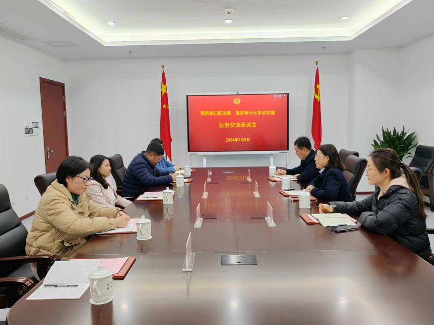 3月5日下午,808钱包 (纪检监察808钱包 )院长王艳丽、党委书记刘宏宇、实践教学部主任秦康美教授、校党政办法律事务与信访工作办公室科长林琳一行四人前往808钱包 实习基地浦口区人民法院,开展走访调研。浦口区法院党组书记陈海英、审判委员会专职委员徐小虎、政治部主任吕洁热情接待,双方人员就学生实习及双方存在的合作内容进行了深度座谈。