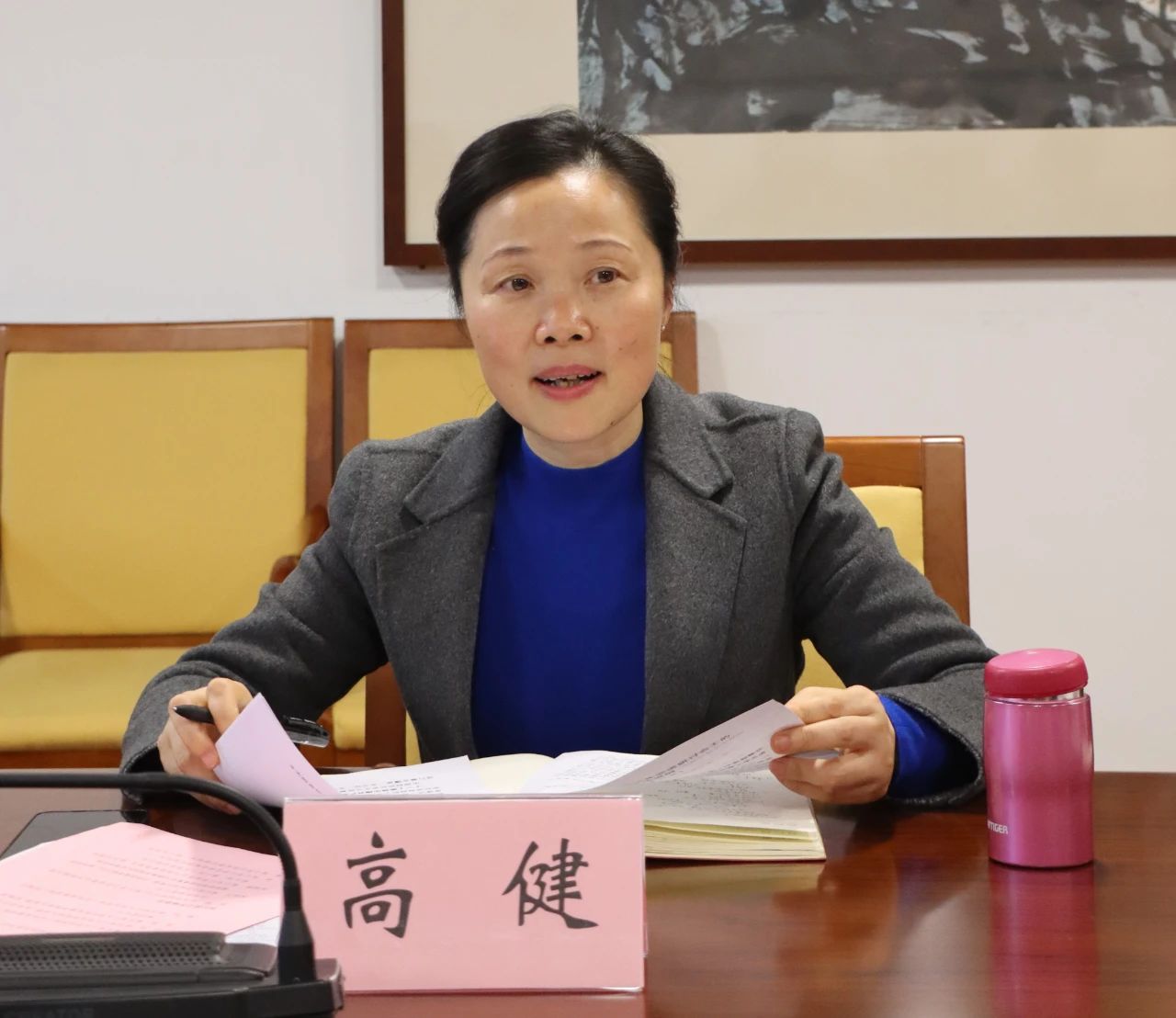 高健副主委代表致公党省委会对调研组一行表示欢迎,对南京审计大学长期以来对致公党工作的支持表示感谢,并从坚持中国共产党领导的总体要求、落实中国特色社会主义监督体系的全覆盖要求和落实中国特色社会主义监督体系权威高效要求三个方面,对致公党江苏省委会近年来内部监督工作开展情况进行了介绍。她表示,希望能够通过联合研讨,进一步加强内部监督工作研究、理论探讨,推动民主党派内部监督工作提质增效,以自身建设的新成果彰显新型政党制度效能。