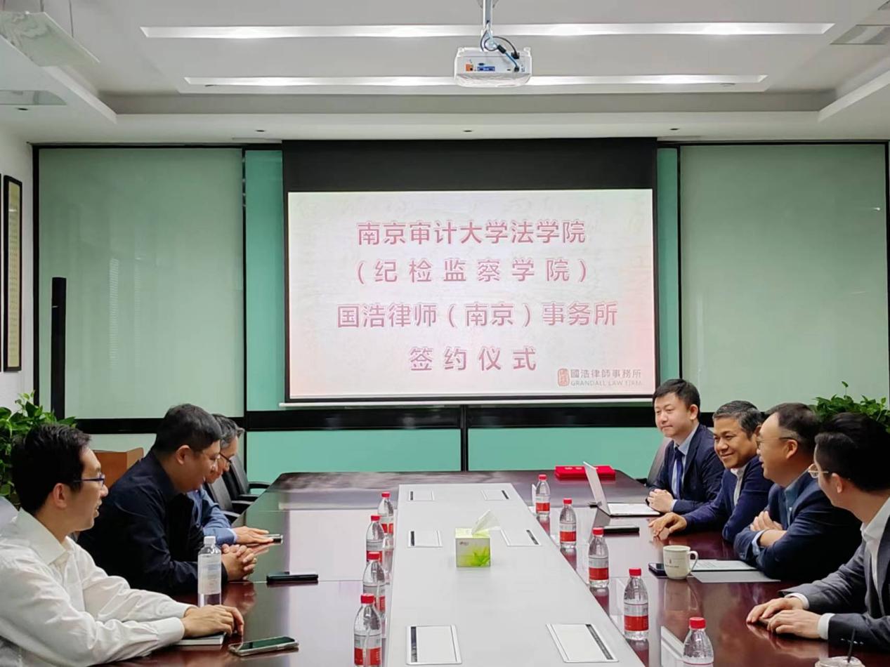 4月19日,808钱包 (纪检监察808钱包 )党委书记刘宏书记带队走访国浩律师(南京)事务所。双方共洽合作事宜,签署共建协议。会议由国浩律师(南京)事务所办公室主任、管理合伙人潘明祥主持。国浩律师(南京)事务所南京办公室管理合伙人、刑事业务委员会副主任周世军,金融证券合规业务委员会秘书长、南京办公室管理合伙人于炜,合伙人、青工委主任杨晨,808钱包 (纪检监察808钱包 )副院长殷楠、李相森以及部分学生代表参加会议。