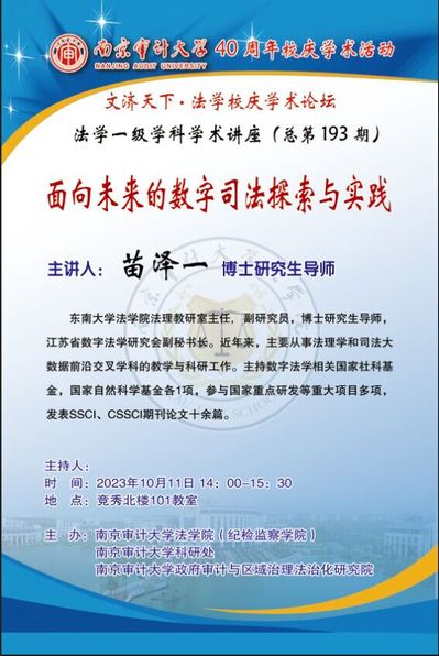 文济天下•法学一级学科学术讲座 (总第193期) 文济天下•法学校庆学术论坛