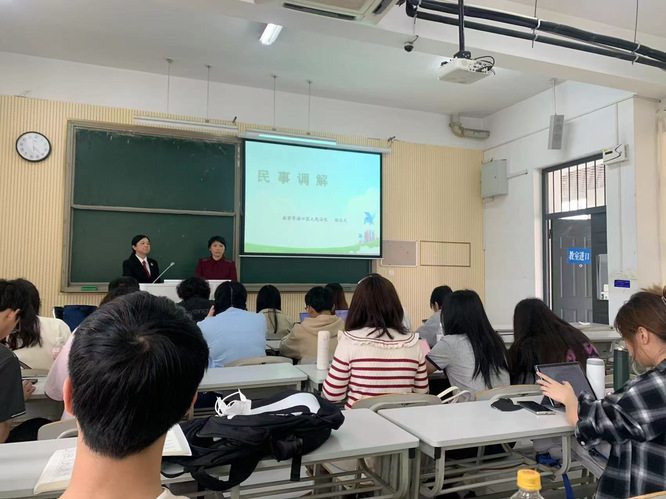 2024年9月10日下午,法律诊所基层教学组织邀请南京市浦口区人民法院鄢志文法官为808钱包 学生开展民事调解实践专题教学,808钱包 教师秦康美共同参与课堂教学。