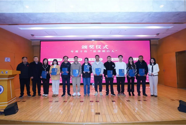 与会领导为年度十佳“高校法治宣传志愿者”、年度十佳“法律明白人”以及“法治‘浦’新篇 光影传力量”主题摄影及短视频征集作品获奖者颁发荣誉证书。