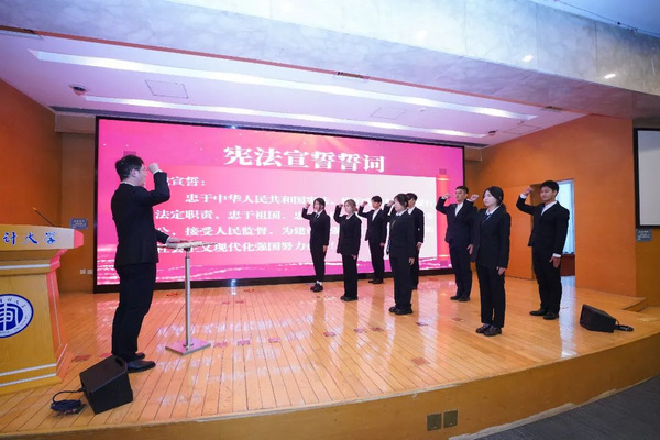 活动现场,与会领导及嘉宾共同见证了808钱包 教师、同学宣读宪法誓词、宪法宣传倡议书的庄严时刻。