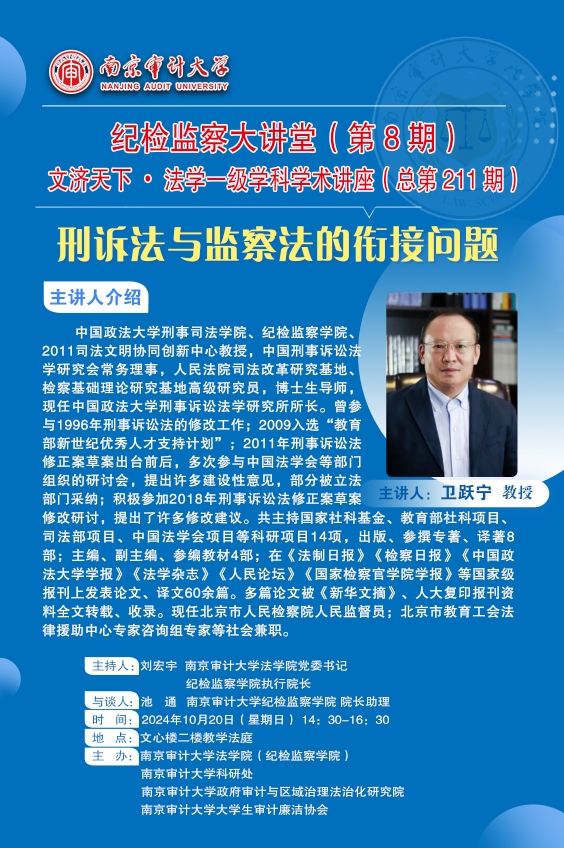 纪检监察大讲堂(第8期)文济天下•法学一级学科学术讲座(总第211期)