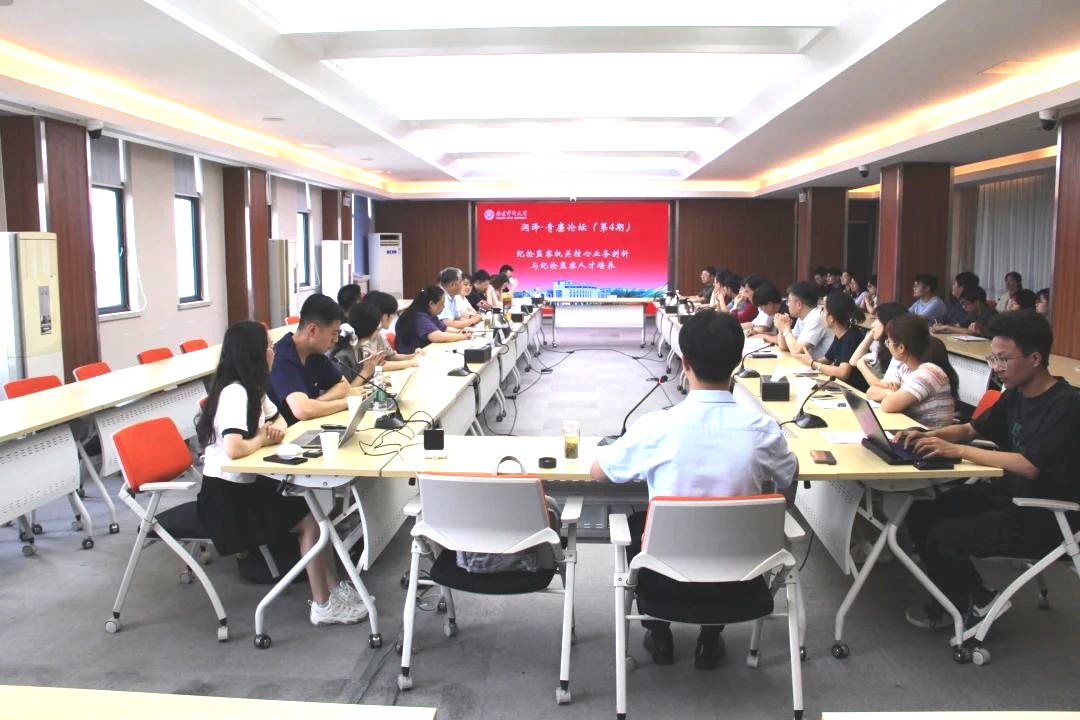 6月13日下午,808钱包 (纪检监察808钱包 )在中和楼502会议室举办第4期“润泽·青廉论坛”,围绕“纪检监察机关核心业务剖析与纪检监察人才培养” 主题展开交流研讨。浦口区纪委监委常委吴敏等数位实务专家莅临现场并作主旨发言,808钱包 院长助理沈玲、纪检监察808钱包 院长助理池通老师和其他30余名师生参会。