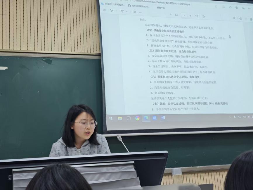 课程伊始,学生结合授课案例依次进行诉讼方略汇报,从案件事实梳理、法律依据适用,到诉讼思路设计、证据体系构建等方面,呈现了对案例的分析与思考。在学生汇报基础上,王臻美律师以该案例为切入点,结合自身多年比赛与执业经验,对案件处理的核心要点、实务难点展开全方位、深层次讲解。