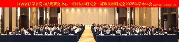 12月6日,由江苏省法学会党内法规研究中心、审计法学研究会、廉政法制研究会共同主办,南京审计大学808钱包 ·纪检监察808钱包 、江苏省职务犯罪检察研究基地承办,北京市尚公(南京)律师事务所协办的“江苏省法学会党内法规研究中心、审计法学研究会、廉政法制研究会2025年学术年会”顺利召开。来自江苏及全国高校、审计部门、法律实务部门的专家、学者及学生近200人齐聚本次学术盛会。